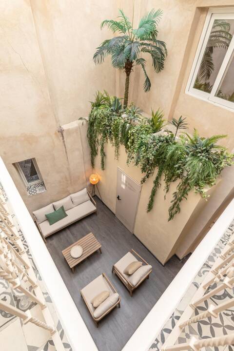 Aunque la firma es especialista en acabados exclusivos, no todos sus proyectos se basan en la alta decoración. El último encargo en los apartamentos Welldone no se ha limitado a la colocación de papel decorativo en los cabeceros de las habitaciones, sino que ha implicado la pintura completa del edificio, tanto por dentro como en sus exteriores. Esta capacidad para ejecutar obras integrales también quedó patente en el Hotel Las Casas del Arenal, en el corazón de Sevilla, donde la empresa asumió la pintura interior y exterior, el revestimiento de patios y azoteas, así como la impermeabilización de la cubierta.