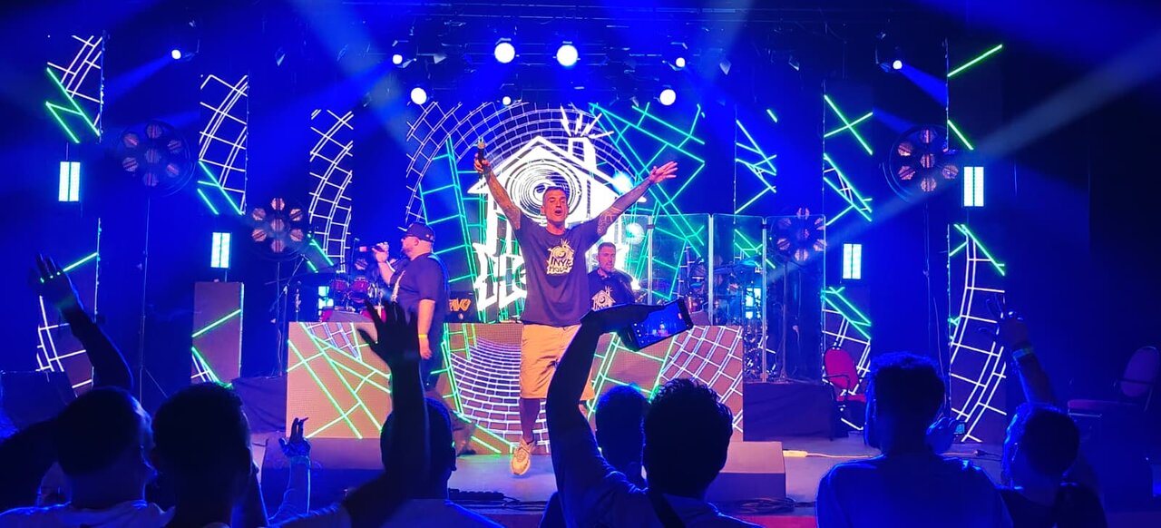 Uno de los momentos más emotivos de la noche se vivió con la vuelta de los marcheneros INYAHOUSE, quienes regresaban a los escenarios tras varios años de parón. La banda, que ha aprovechado este tiempo para crear nueva música, fue recibida con entusiasmo por sus fieles seguidores, que volvieron a vibrar con un directo que recordó sus mejores épocas. Este bloque local dio paso al plato fuerte del cartel, El Duende Callejero, que ratificó su posición como uno de los grupos referentes de la rumba pop nacional con un espectáculo cargado de energía que mantuvo a todo el repleto recinto en movimiento.