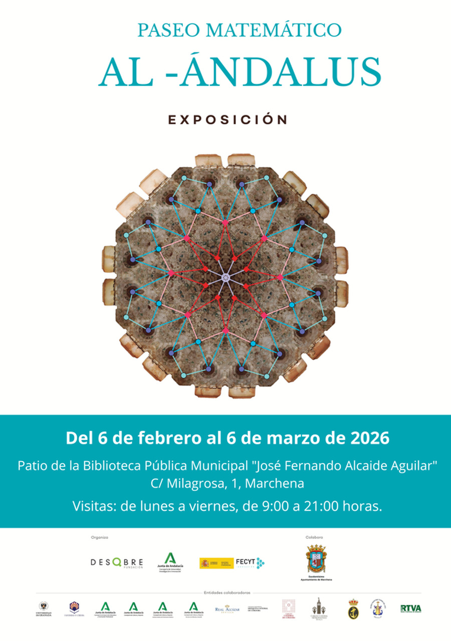 El patio de la Biblioteca Pública Municipal José Fernando Alcaide Aguilar se convierte desde el 6 de febrero en un espacio para descubrir el patrimonio andalusí desde una perspectiva poco habitual, gracias a la exposición ‘Paseo Matemático Al-Ándalus’, que llega a Marchena con una propuesta divulgativa dirigida a todos los públicos.