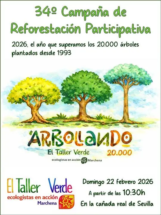 Marchena acogerá el próximo domingo 22 de febrero la 34ª Campaña de Reforestación Participativa, organizada por El Taller Verde y Ecologistas en Acción Marchena, una cita ya consolidada en el calendario ambiental del municipio.