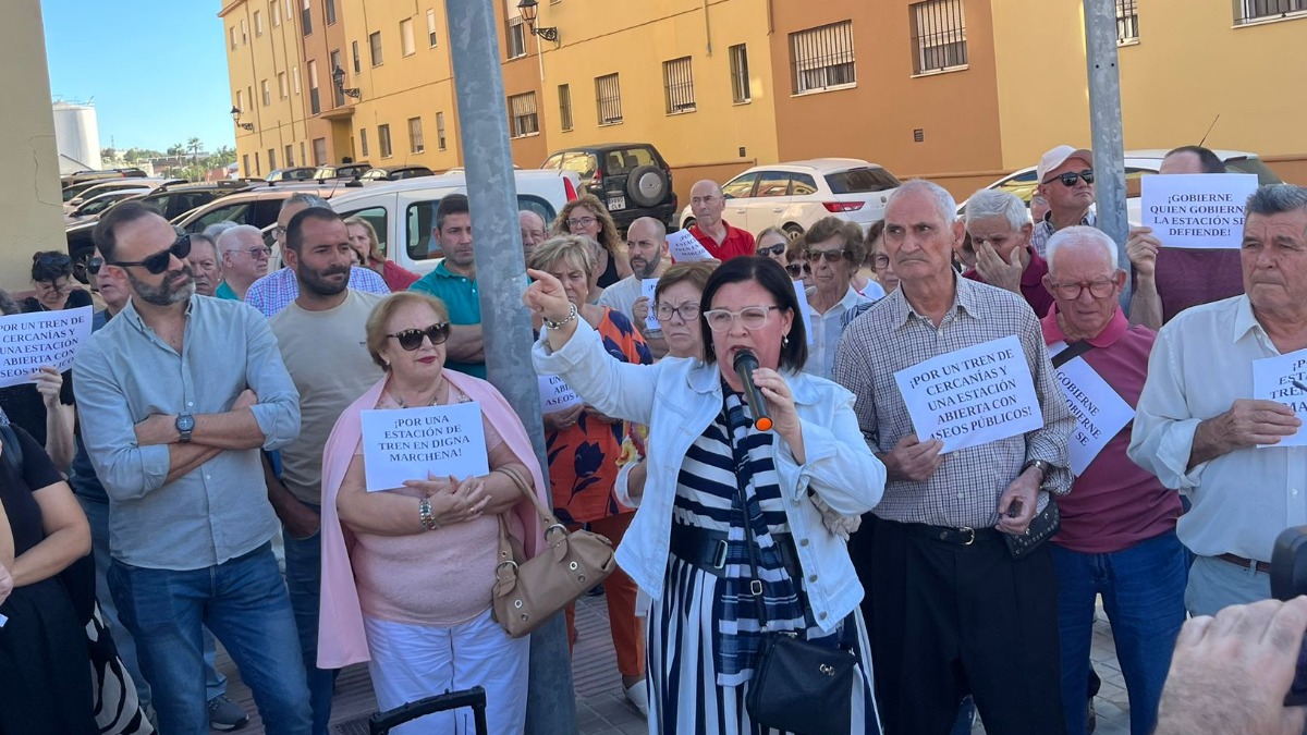 El pueblo de Marchena se ha concentrado a las cinco de la tarde de este viernes a las puertas de la estación de tren de la localidad para protestar por su estado actual, por los servicios que presta y reclamando el cercanías y que se reabra. Convocados por el PSOE del municipio un grupo de personas, menos numeroso que el del viernes pasado en la concentración por la sanidad pública, ha manifestado su malestar en la estación en un acto al que han asistido además varios concejales del equipo de Gobierno y oposición, todos encabezados por la alcaldesa, María del Mar Romero, que alzó la voz para hacer varios anuncios,