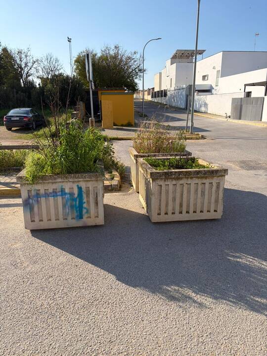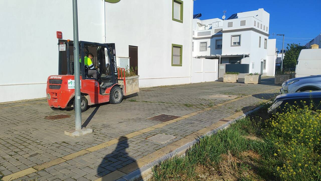 El Ayuntamiento de Marchena ha retirado este martes varios de los grandes maceteros instalados en el barrio de la Alameda de Marchena, reestructurando los restantes en base a un informe policial.