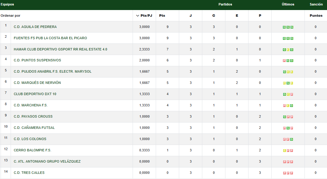 El ‘Taberna Andaluza FS’ de Marchena consiguió su primera victoria de la temporada al imponerse a domicilio al Cañamera Futsal de San José de la Rinconada por 2-5. Los marcheneros, que venían de una derrota y un empate, firmaron una segunda mitad espectacular para remontar el encuentro y sumar tres puntos que los colocan octavos en la clasificación con cuatro puntos.