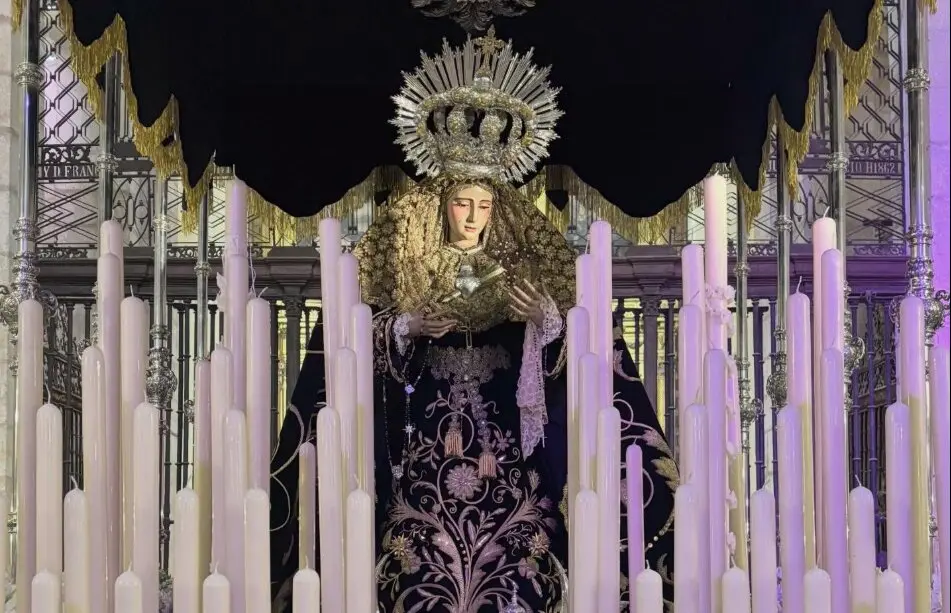 La Ilustre y Fervorosa Hermandad de Esclavitud de los Sagrados Corazones de Jesús y de María y Cofradía de Nazarenos de Nuestra Señora de los Dolores en su Soledad procesiona este próximo 4 de abril de 2026 por las calles de Morón de la Frontera. Esta estación de penitencia pondrá el broche a los desfiles procesionales en la localidad de la Campiña durante la jornada del Sábado Santo.