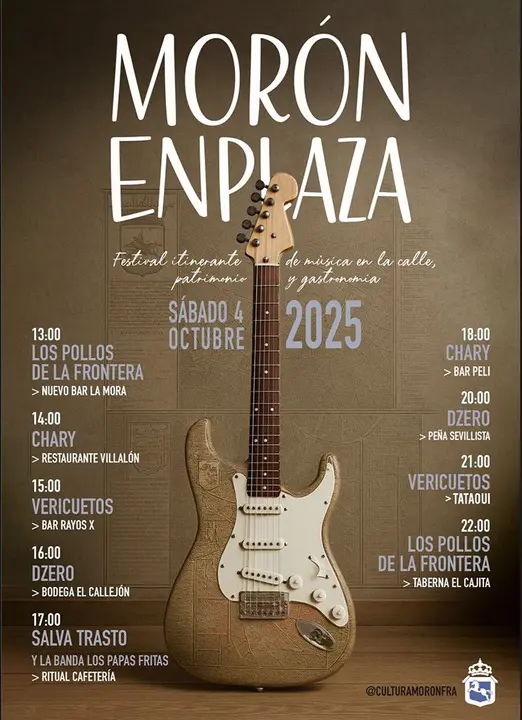 Morón de la Frontera acogerá este sábado 4 de octubre la segunda edición del festival ‘Morón EnPlaza’, una cita que combina música en directo y gastronomía en las calles de la localidad. El evento, que tuvo que aplazarse en dos ocasiones por la lluvia, podrá celebrarse finalmente con normalidad. El delegado de Cultura, Alfonso Luna, señaló que “ahora sí parece que vamos a poder desarrollarlo sin ningún problema”.