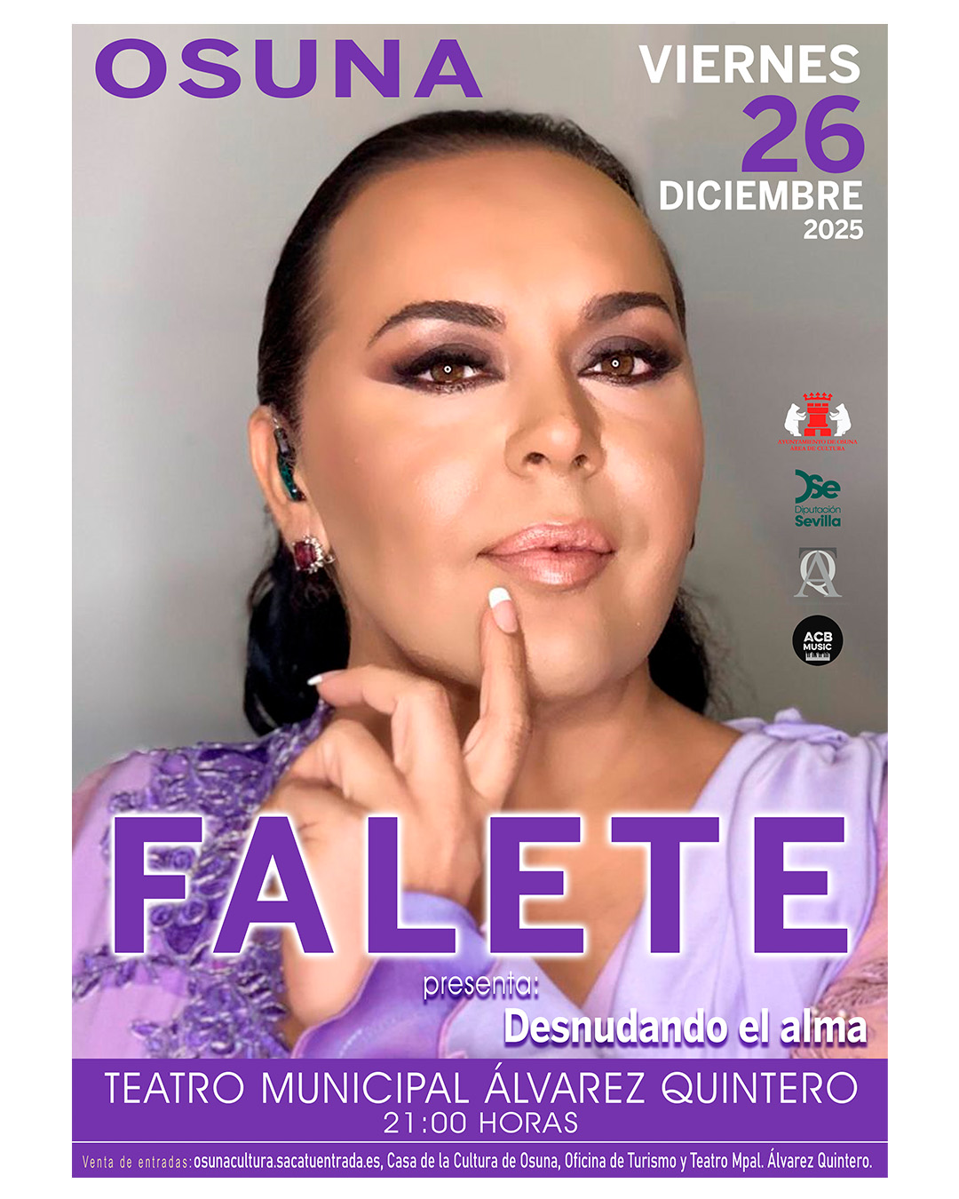 Osuna vivirá una cita cultural destacada el próximo viernes 26 de diciembre con la actuación de Falete, que presentará su espectáculo ‘Desnudando el alma’ en el Teatro Municipal Álvarez Quintero.