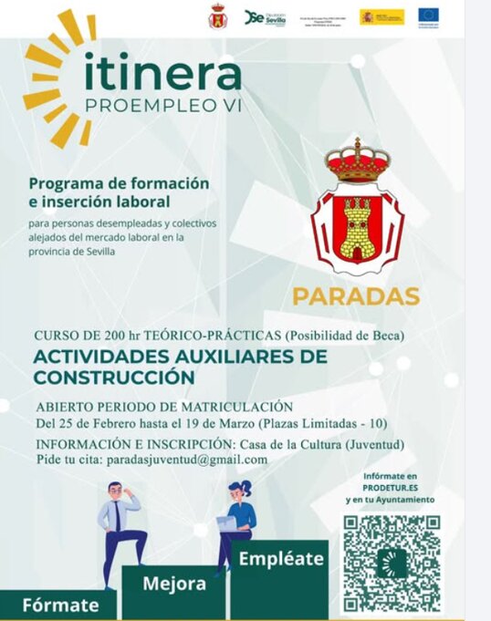 Esta iniciativa se enmarca en el programa Itinera Proempleo VI, impulsado por el Ayuntamiento de Paradas con el objetivo de facilitar oportunidades reales de formación y acceso al empleo para personas desempleadas del municipio.