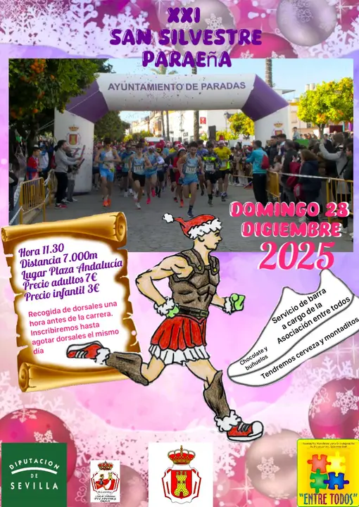 La San Silvestre paraeña celebra su vigésimo primera edición y se mantiene como uno de los eventos más esperados del calendario anual de Paradas. El Ayuntamiento anima a corredores y familias a participar en una jornada que combina deporte, animación y espíritu comunitario para cerrar el año de manera activa y compartida.