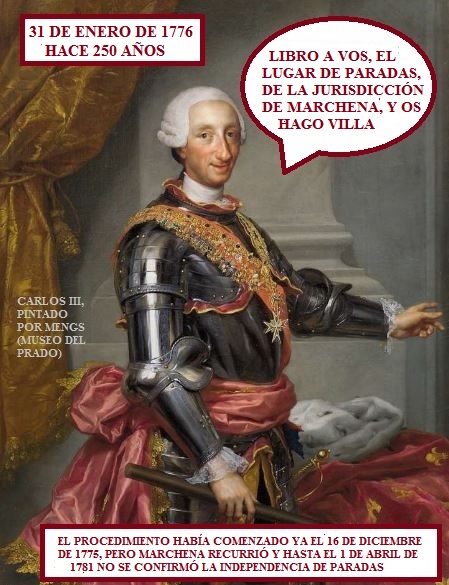 Paradas celebra este sábado, 31 de enero, el 250º aniversario de la concesión del Privilegio de Villazgo que marcó su nacimiento como villa independiente de Marchena, un hecho histórico otorgado por el rey Carlos iii y considerado uno de los hitos fundamentales de la historia local.