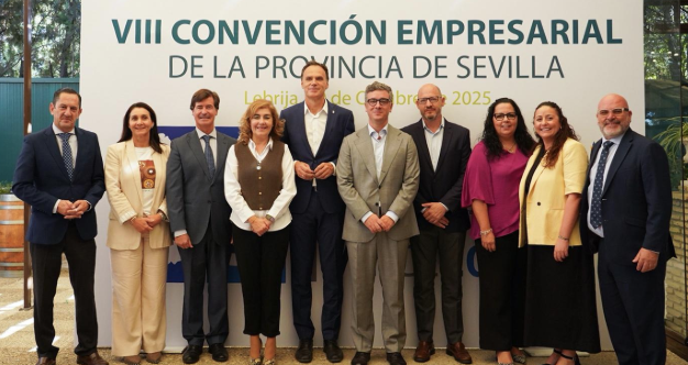 Lebrija ha acogido hoy la VIII Convención Empresarial de la Provincia de Sevilla, un encuentro organizado por Prodetur y la Confederación Empresarial de Sevilla (CES), con la colaboración del Ayuntamiento lebrijano y la Asociación de Pequeños y Medianos Empresarios del municipio, que ha reunido a más de un centenar de empresas y autónomos de toda la provincia.