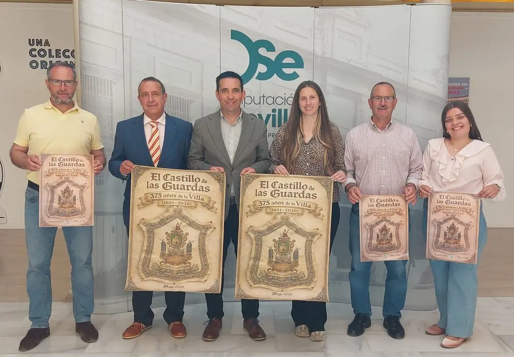 El alcalde de El Castillo de las Guardas y diputado provincial, Gonzalo Domínguez, ha presidido hoy la presentación en la Casa de la Provincia de la Diputación de Sevilla de la efemérides “El Castillo de las Guardas. 375 años de la Villa (1651–2026)”, un acontecimiento que se celebrará en la localidad durante el próximo mes de mayo y del que hoy se han publicitado tanto el cartel anunciador como el programa de actividades, que incluye un ciclo de conferencias a cargo de reconocidas personalidades, como Pilar Llop, ex presidenta del Senado.