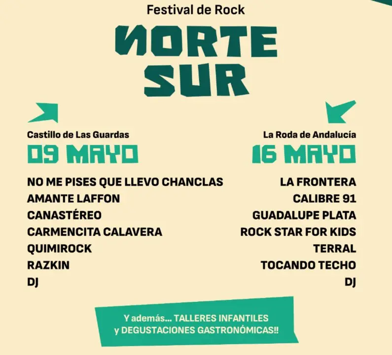 La Diputación de Sevilla, a través de su área de Cultura y Ciudadanía, ha dado a conocer los detalles del Festival Rock Norte-Sur, que se celebrará durante dos jornadas del mes de mayo en los municipios de El Castillo de las Guardas y La Roda de Andalucía.
