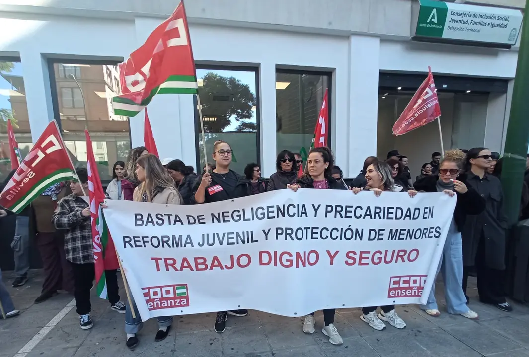 CCOO se ha concentrado este martes a las puertas de la Delegación Territorial de Inclusión Social, Juventud, Igualdad y Familias para denunciar “la inestabilidad laboral de estos trabajadores y trabajadoras” como consecuencia de las nuevas licitaciones en las que están envueltos 30 de los centros existentes en la provincia.