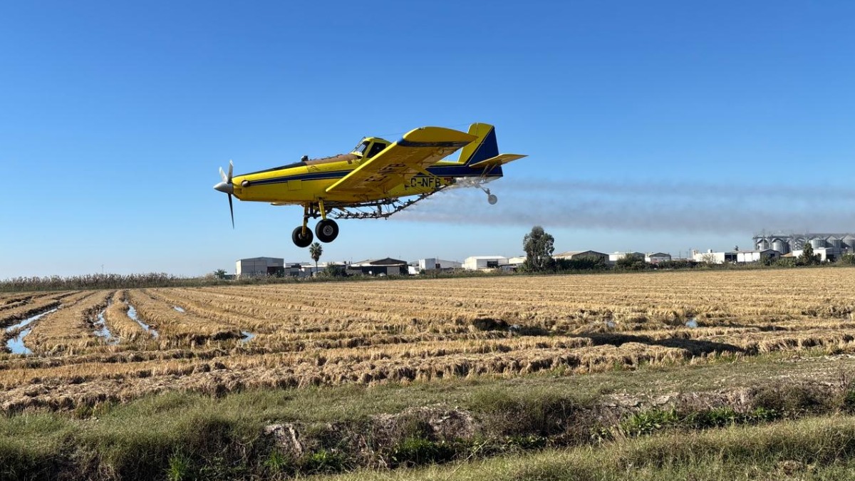 La Diputación inicia la tercera fase de tratamientos biocidas aéreos en el arrozal para el control de los mosquitos transmisores del Virus del Nilo Occidental