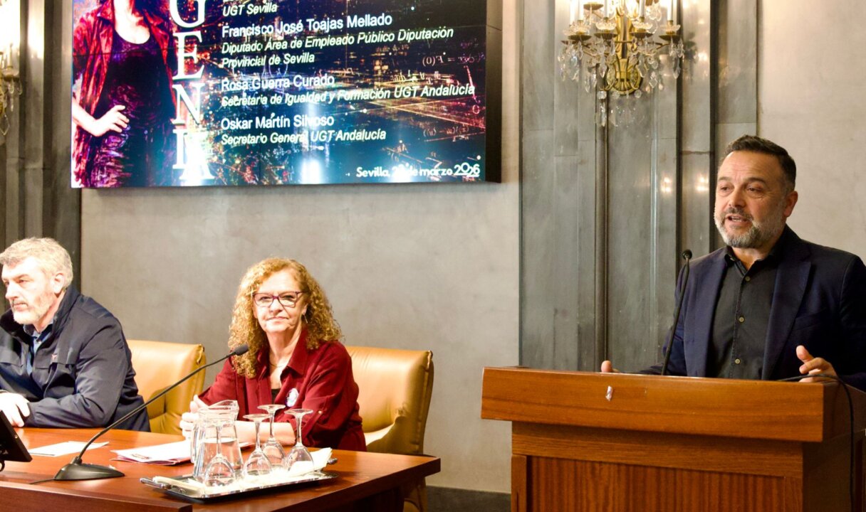 La Casa de la Provincia de la Diputación de Sevilla ha acogido este lunes el acto conmemorativo del Día Internacional de las Mujeres organizado por UGT Andalucía, en el que ha participado el diputado de Régimen Interior y Empleado Público, Francisco Toajas, en representación de la institución provincial.