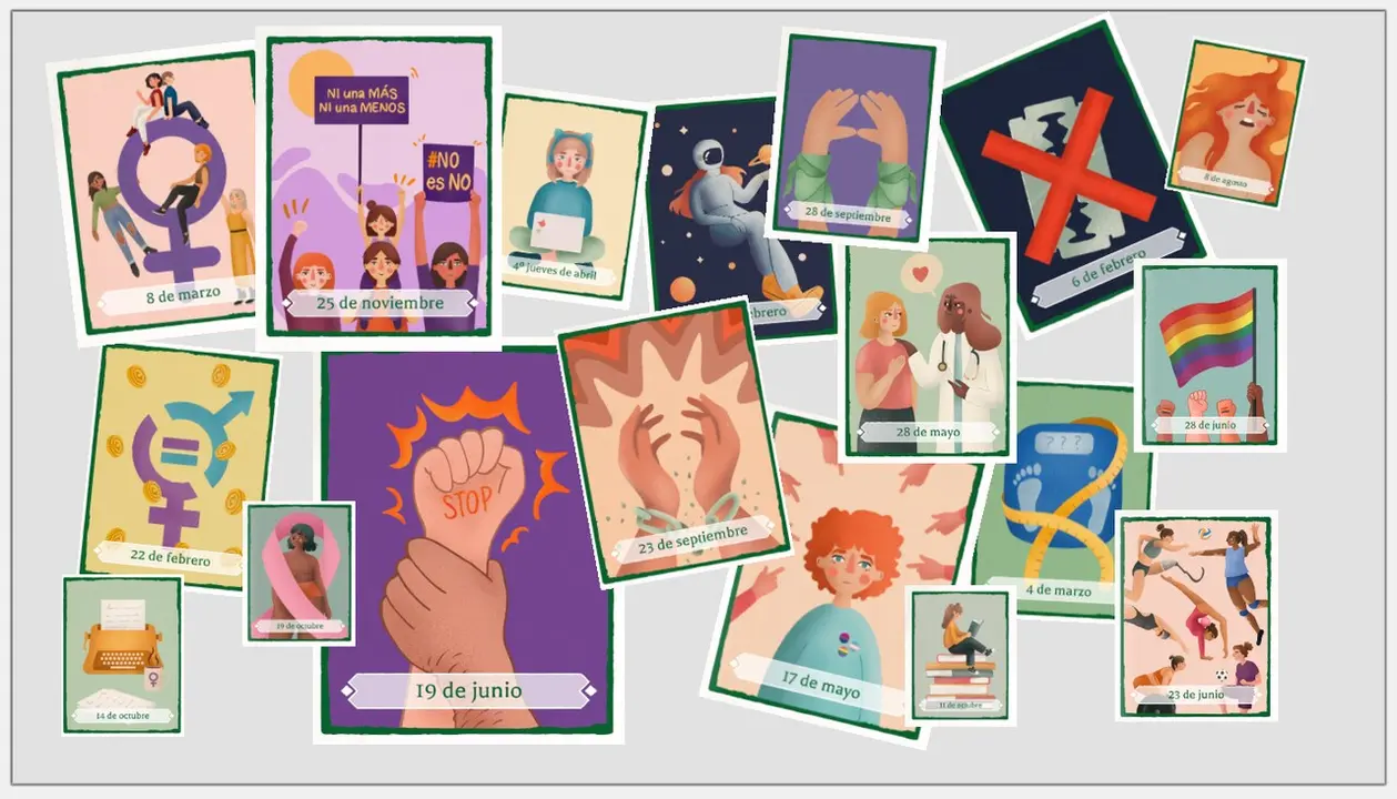 El juego “Conectando Días Internacionales” se basa en el tradicional juego de memoria en el que se deben emparejar cartas recordando su ubicación para así hacer coincidir cada pareja. Existen ocho niveles de dificultad y un cronómetro que suponen un desafío de memoria y agilidad. Cada pareja de cartas muestra la imagen de una efeméride relacionada con temas de igualdad de género, diversidad sexual y de género y otras realidades y comunidades históricamente invisibilizadas.