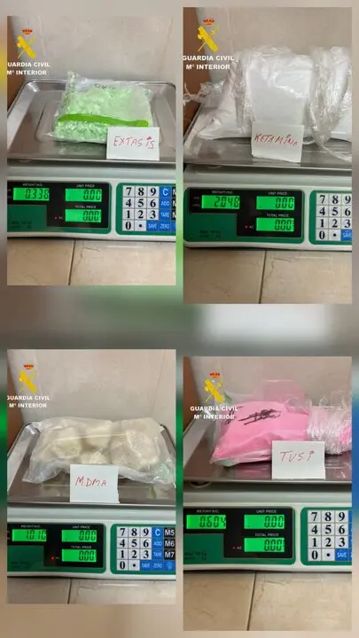 De forma paralela, la operación Osset-Yami puso el foco en un inmueble de Bormujos sospechoso de servir como almacén logístico o guardería. Tras establecer una vigilancia permanente, los investigadores confirmaron la actividad ilícita y procedieron a la entrada y registro de la vivienda. En su interior, el dispositivo se saldó con la captura del propietario y la incautación de un importante alijo: 1.124 pastillas de éxtasis, 3,3 kilogramos de MDMA y tusi, además de dos kilogramos de ketamina. Los agentes también intervinieron material informático y terminales móviles que están siendo analizados para rastrear posibles conexiones con otras redes.