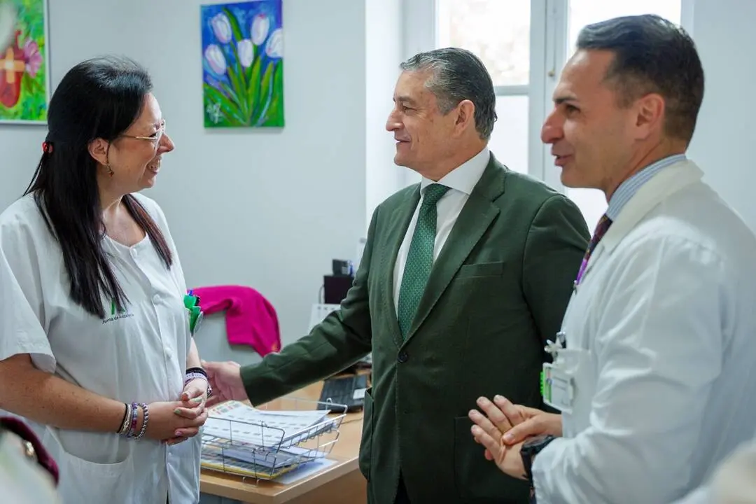 El Hospital San Lázaro, integrado en el área hospitalaria Virgen Macarena, cuenta ya con una nueva área de consultas de Anestesia y de Unidad del Dolor con 430 metros cuadrados, totalmente reformada y que viene a mejorar la atención a los más de 9.000 pacientes que pasan por estas consultas cada año. También ha visitado hoy el consejero las nuevas consultas de Urología, a las que se han incorporado nuevos equipos (ecógrafos y equipo de cistoscopia) que, ha explicado Antonio Sanz, “permiten implantar el acto único y mejorar también la capacidad diagnóstica”. En total se ha realizado una inversión cercana a los 545.000.