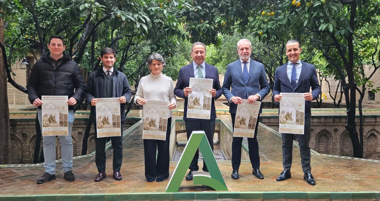 El delegado del Gobierno de la Junta de Andalucía en Sevilla, Ricardo Sánchez, ha presentado este martes el cartel anunciador del Belén Viviente de Escenas Estáticas de Cantillana, que se celebra los próximos 27 y 28 de diciembre en la Aldea cantillanera de la Divina Pastora. Junto al responsable del Gobierno andaluz en Sevilla han estado presentes la delegada territorial de Turismo, Cultura y Deporte, Carmen Ortiz, el hermano mayor de la Hermandad de la Divina Pastora, Florencio Arias Solís, el autor del cartel anunciador, Eduardo Pastor de la Hera Naranjo, y miembros de la Junta de Gobierno de la Corporación pastoreña.