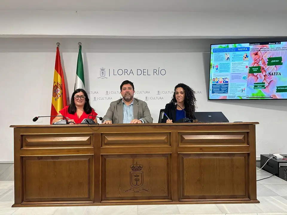 La Delegación territorial de Inclusión Social, Juventud, Familias e Igualdad de la Junta de Andalucía en Sevilla y el alcalde de Lora del Río, Antonio Enamorado, han firmado este martes un convenio de colaboración que posibilita la implantación en el municipio sevillano del programa preventivo para niños, niñas y adolescentes en situación de dificultad o conflictividad en el ámbito familiar; el denominado programa Nayfa de la Consejería de Inclusión Social, Juventud, Familias e Igualdad de la Junta de Andalucía. El acuerdo permitirá disponer de un recurso directo en la propia localidad que ayude a gestionar conflictos familiares entre menores y sus progenitores. Previo a la firma del convenio, la Junta de Andalucía ha impartido una formación a los servicios sociales comunitarios de Lora del Río.