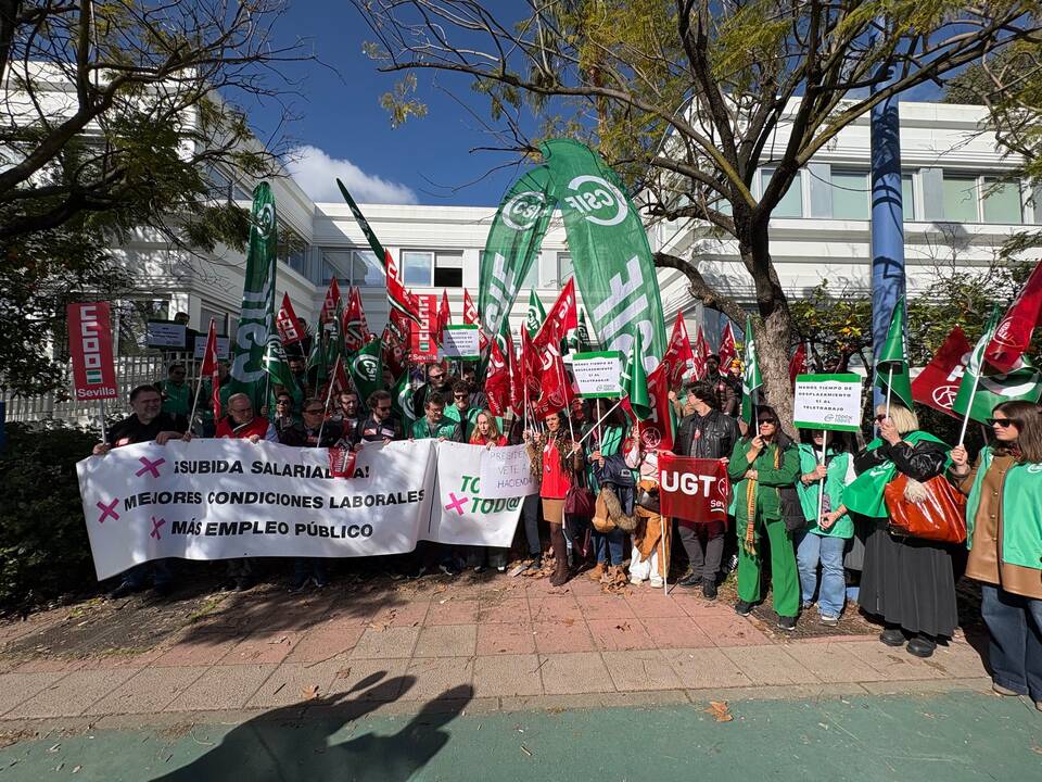La plantilla de la Agencia Estatal de Meteorología (AEMET) se ha movilizado hoy en Sevilla para exigir mejores condiciones laborales. La protesta, convocada por CSIF junto a otras organizaciones sindicales, es la continuación del calendario de protestas que se inició en Madrid el 12 de febrero y pasó por Valencia el día 17.