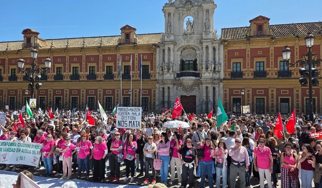Unas 55.000 personas han tomado el centro de Sevilla este domingo, 12 de abril, en una multitudinaria marcha en defensa del sistema sanitario. La movilización busca frenar el deterioro de los servicios asistenciales y exigir medidas urgentes frente a las demoras clínicas que ponen en riesgo la vida de los pacientes.