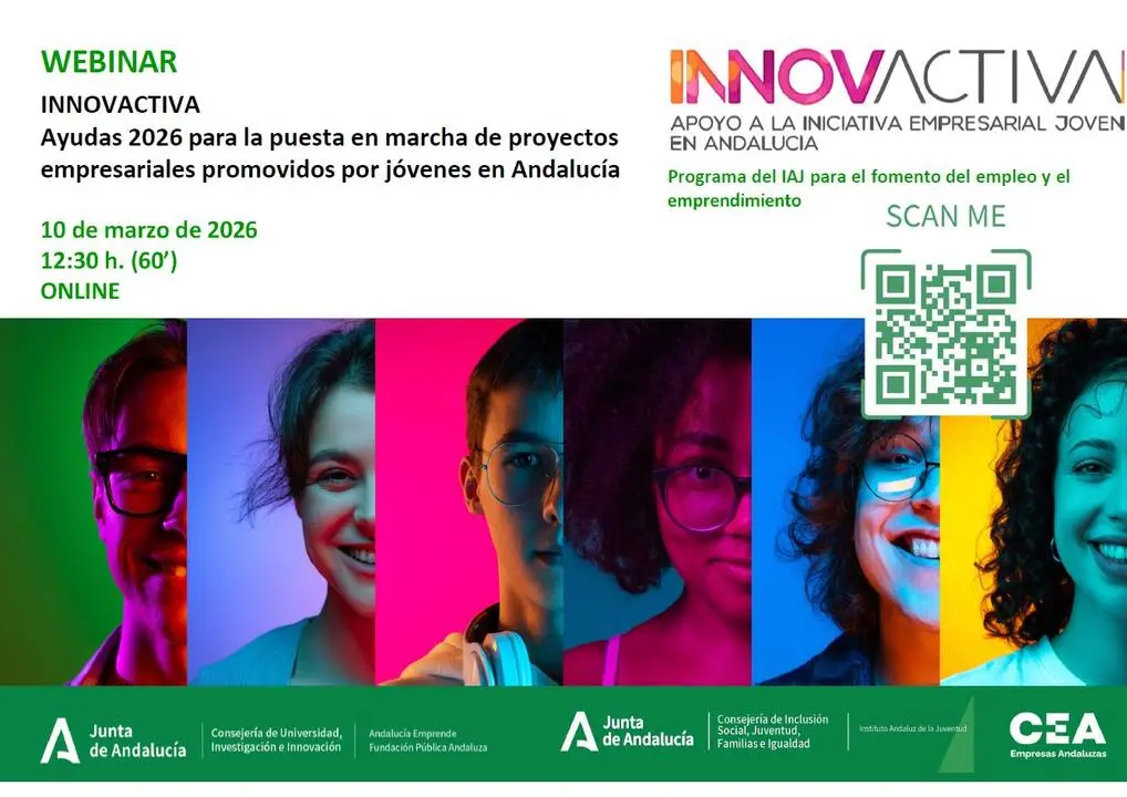Para explicar los detalles de la convocatoria, Andalucía Emprende y el Instituto Andaluz de la Juventud celebrarán un webinar informativo el 10 de marzo de 2026, entre las 12:30 y las 13:30 horas, a través de la plataforma Zoom.