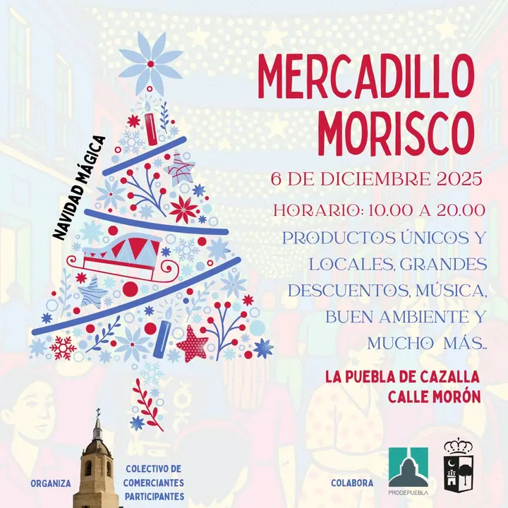 El evento está organizado por el colectivo de comercios participantes, con la colaboración del Ayuntamiento de La Puebla de Cazalla y Prodepuebla SL, que refuerzan así su apoyo al tejido comercial local. Una oportunidad perfecta para vivir una Navidad cercana, alegre y con esencia morisca.