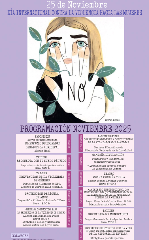 Durante el mes de noviembre se desarrollarán diversas propuestas que combinan cultura y educación en igualdad, como la proyección de una película, una exposición de libros, la lectura del manifiesto institucional y una representación artística en torno a la concienciación contra la violencia machista.