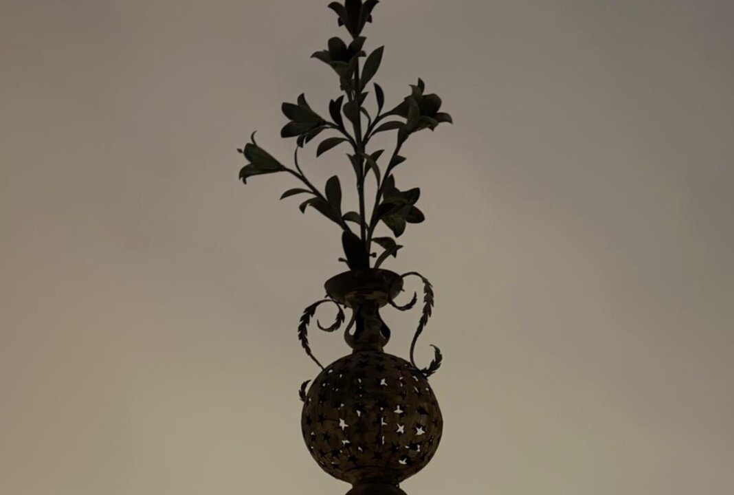La azucena desprendida de la Giralda pesa 120 kilos y mide 3.85 metros