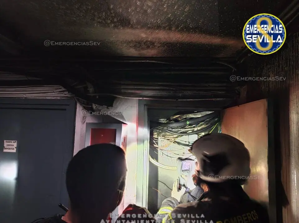 Un incendio de origen eléctrico registrado en un bloque de viviendas de la calle Virgen de la Antigua, en Sevilla, movilizó en la noche del jueves a efectivos de Bomberos y Policía Local.