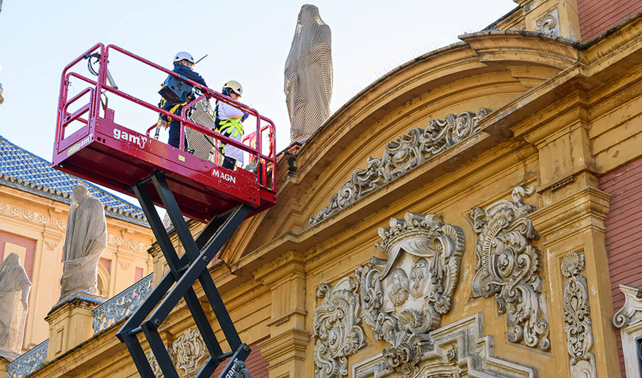 Iniciados los estudios previos para conservar las esculturas y portada lateral del Palacio de San Telmo de Sevilla