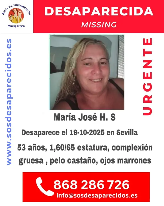 La Asociación 'SOS Desaparecidos' ha publicado este lunes en redes sociales que se busca de manera urgente a María José H.S, desaparecida el pasado domingo en Sevilla.