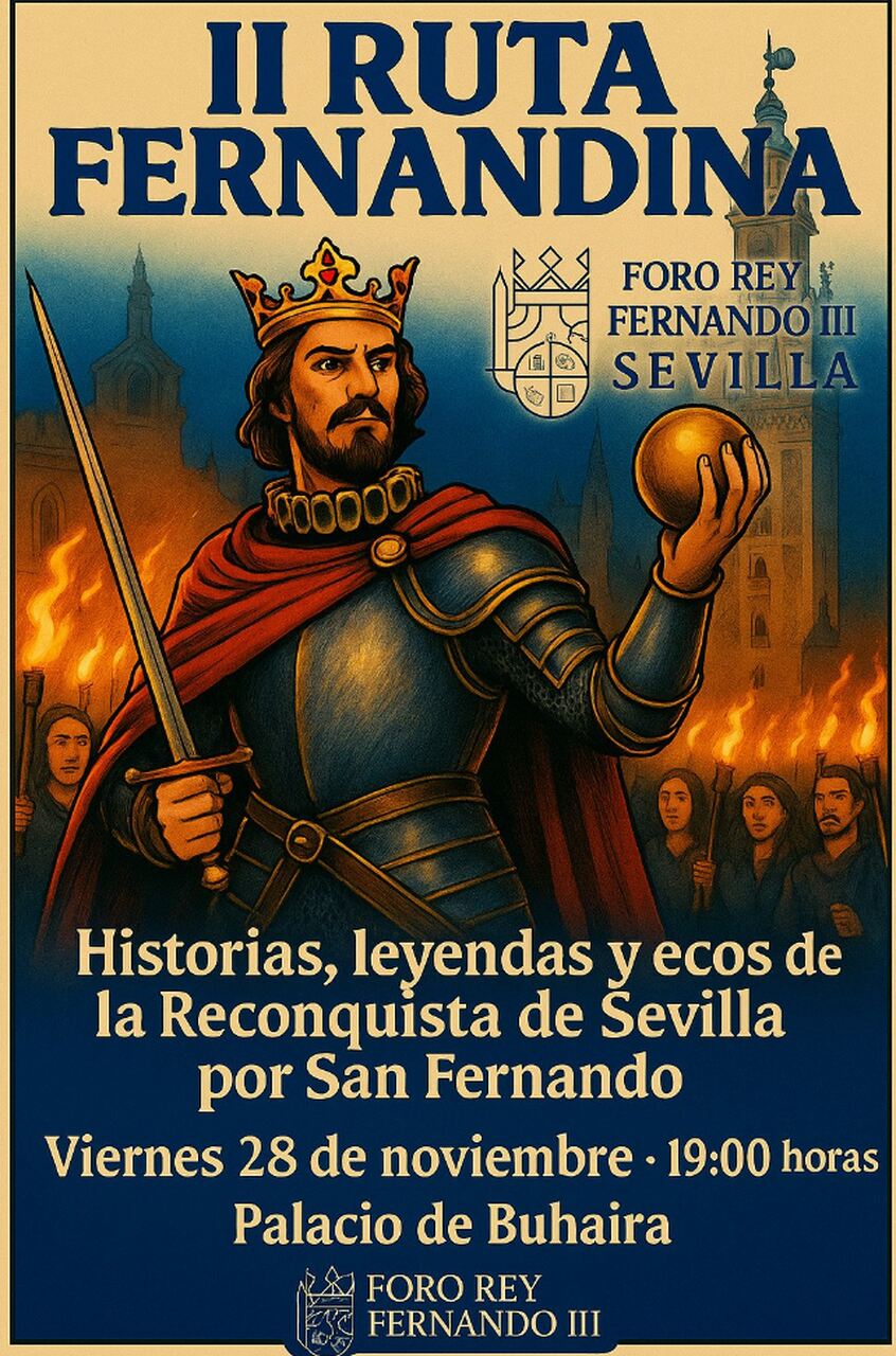 El viernes 28 de noviembre tendrá lugar la II Ruta Fernandina, bajo el título ‘Historias, leyendas y ecos de la Reconquista de Sevilla por San Fernando’. La visita partirá del Palacio de la Buhaira y recorrerá enclaves simbólicos como San Bernardo y el barrio de Santa Cruz, para concluir en la Puerta del León con una antorchada conmemorativa organizada junto a Memorial Sevilla 1248.