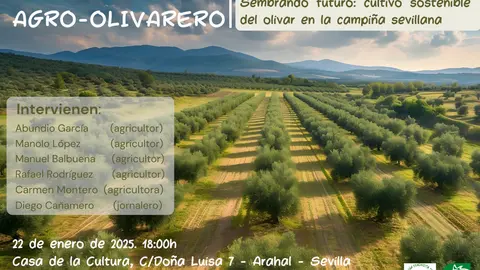 Arahal La sostenibilidad del futuro del olivar en la Campiña sevillana, a debate el 22 de enero en Arahal 13/ene/25 En la Casa de la Cultura a partir de las seis de la tarde con entrada gratuita