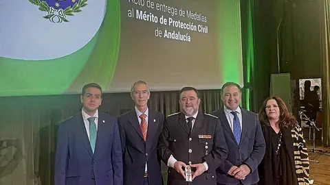 Utrera El Jefe de Bomberos y Servicios de Emergencias de Utrera, Juan Diego Carmona, recibe la Medalla al Mérito de Protección Civil 13/ene/25 De manos del consejero de Presidencia e Interior de la Junta de Andalucía, Antonio Sanz