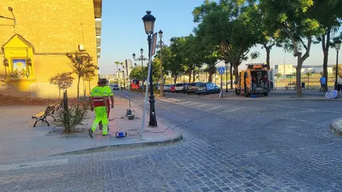 Obras en la calle Pío Baroja de Los Palacios para renovar acerados y red de agua potable